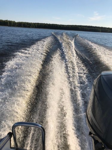 На воде оставляет видимый след, брызг нет, петуха нет, на управлении вроде как не отразилось. Дырки под старый датчик тоже заварили. Единственное, не успел провести нормально провод и снять старый - сделал временно, так-как времени было в обрез и до отъезда хотелось успеть протестить на воде. Результатом доволен!