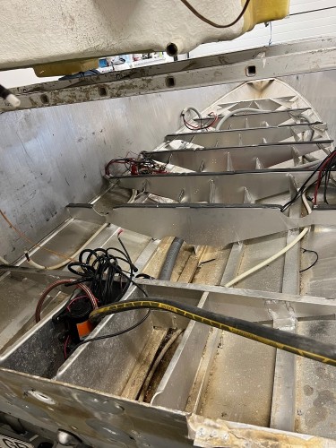 При снятии ванны особых проблем не возникло, резать алюминий пришлось лишь на самом носу, совсем не много. По бортам же пришлось демонтировать рейлинги и высверлить заклёпки в профиле, которые закрыты декоративной лентой. Ну и повозиться с проводами.