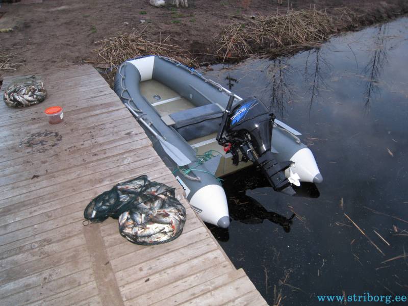 Пока не было мотора, пару-тройку раз выходил на воду на вёслах, но гребля на такой лодке только в удовольствие. В конце августа прикупил и мотор. Мотор выбирал недолго, просто Pikekiller сказал, что "Суза-6 прекрасный мотор", на этом и порешили. Мотор хотел со встроенным баком при максимальной мощности и чтоб влезал всё в тот же багажник. Подходящий вариант нашёл в Тарту, мотор не прошёл ещё и обкатку.