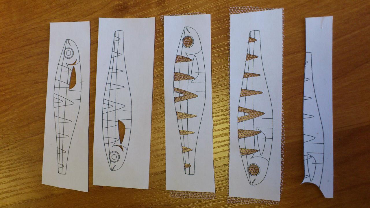 Были мысли об этом, плёнка прозрачная есть, буду пробовать. Но мне кажется, что бумажный трафарет легче огибать вокруг приманки.Stekloduv писал(а):Трафареты лучше делать из прозрачного материала