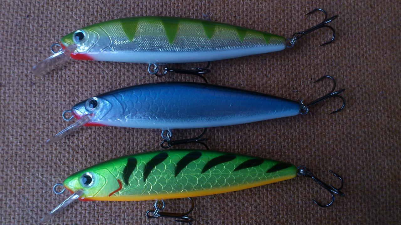 Я испытываю их вместе с крючками, которые будут впоследствии устанавливаться на этих воблерах. Когда результат устраивает - сушим и покрываем воблеры ещё двумя слоями лака, только теперь подвешивать воблер нужно строго хвостом вниз, иначе лак будет неровно стекать по лопасти и работа будет испорчена. В итоге получается такие вот воблеры
