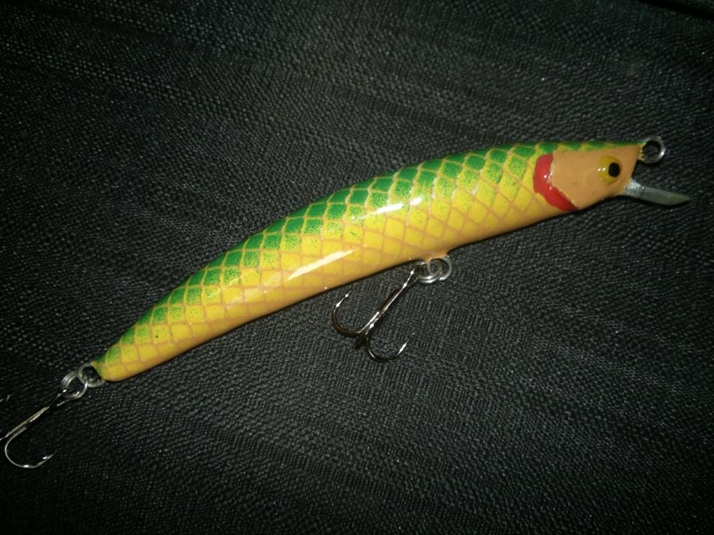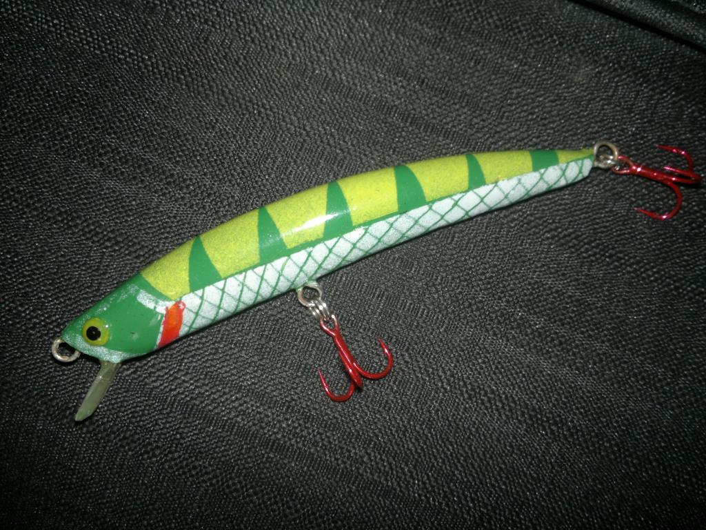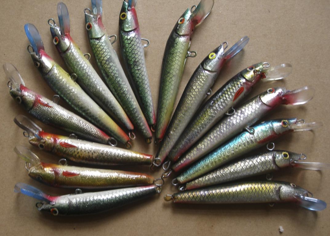 Ну вот и я "разродился". Примите на ваш суд моих первенцев. За образец взят Смитовский Джиб 90. Оригинал в прошлом году очень порадовал, вот с него и начал. Да к тому-же, у прототипа полупрозрачный корпус, так что места огрузки хорошо просматриваются , что для меня ,- новичка,- большой плюс. Материалы : осина, нерж. проволока 0,8 мм, огрузка свинцом в районе центральной петли, лопатка - оргстекло. Краска- аэрозольный акрил. 6 слоёв паркетного лака Тиккурила. Все плавающие, вес - 9 гр., вес оригинала - 7 гр. Опробованы пока только в ванной,- игра близка к оригиналу, на днях надеюсь проверить на большой воде.