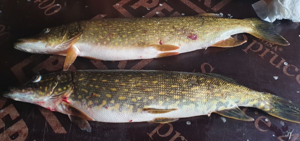 Отплываю метров на 5, садится двушка, тащю её практически как бревно, некогда искать в рюкзаке щипцы, хватаю за поводок и перекидываю в лодку, щук делает кульбит, валится на борт лодки и нет что бы внутрь упасть, аккурат падает за борт, я в шоке, всякие мысли в голове не хорошие.