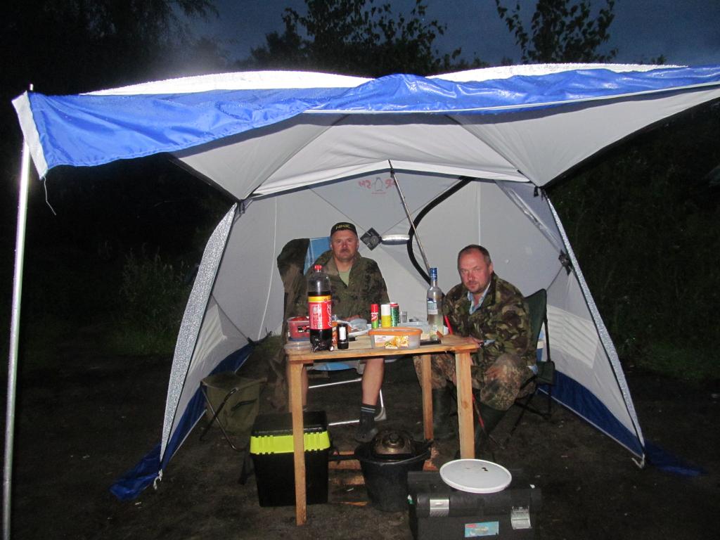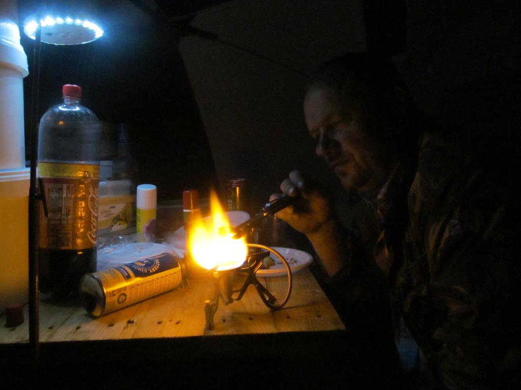 Первым обрыбился я - налимчик попался уже в первых сумерках где-то в пятом часу. Не мудрствуя лукаво, ловил на свою любимую оснастку Гарднера. Только не на плетню, а на монофил, и тупо на донки. Фидер в ловле налима явно лишнее, хотя Миша и упирался.