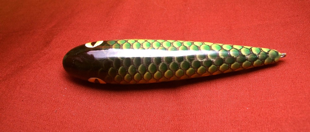 Был один миношка ,обклееный фольгой и покрыт в 10 слоев лака.Лак остался немного на голове и все, щука даже фольгу сняла местами
