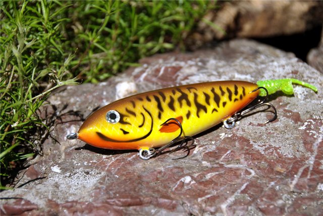 Посмотри на покрытие аналогом Энвиротекса, который по сути, является эпоксидным клеем холодного отверждения, с добавкой 5 - 15 % нонилфенола. Задачи нанесения тонкого покрытия никогда не стоит.Это легко достигается разбавлением лака, растворителем. А важно нанести максимальное количество лака, за 1 или 2 операции, без наплывов и внутренних напряжений. И если после покраски джерка, не трогать его руками,а пользоваться перчатками, то никаких "проплешин и ямок" не будет. На эти медленно тонущие джерки 135 мм /40 г, за 1 операцию,кисточкой наносится 2 г лака, т.е. 5 % от веса. Возможно, фото не передает глубины, а они как мухи в стеклеIkel писал(а):можно что-нибудь глянуть покрытое Энвиротексом? И ещё пару вопросов в догонку по нему же: если слой Энвиротекса получается тонковатым, "проплешины" или "ямки" получаются? Получается, что для каждого воблера надо экспериментально подбирать количество Энвиротекса? Каким инструментом осуществляется покрывание воблера?
