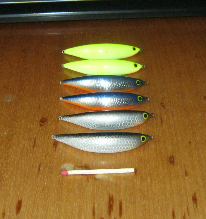 Всем привет! В последнее время редко на форум заходил, так как лето, то да се. Стругать не часто получается тоже. До новых моделей все никак не доберусь, хотя планов не мало ))). Сделал вот все тех же малышей 35 мм. Очень убойная получилась модель по голавлю. Ну и другие рыбки жрут ее. Кроме плавающего и медленно тонущего варианта стал делать и быстро тонущий. Летает - пулей. 4,3 грамма вес. Все, ясное дело, под разные условия. Плавучесть (тонучесть) буквами подписываю на животике.