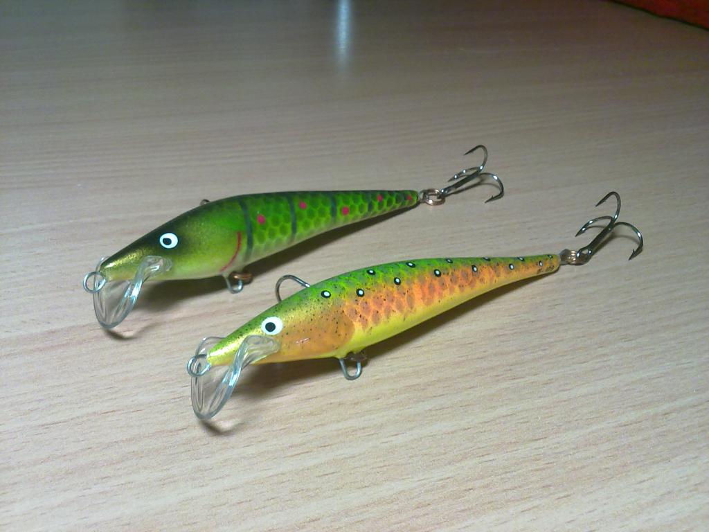 Из шести моделей на фотках, две модели огружены. Те модели, котрые я делаю для рек, ими ловлю взаброс, иногда ставлю на дорожку(речную). Троллинговыми моделями взаброс ловлю очень редко. Бывало пару раз- ловил на Minnow Z на маленьком лесном озере. Окунь и щука реагировали положительно.