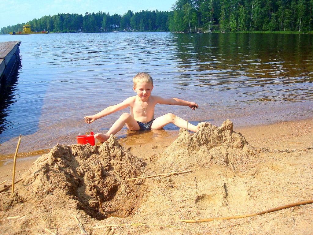 Мы решили половить рыбу с мостков, но видимо прозрачная и холодная вода клеву не способствовали, нам удалось поймать за 5 часов по паре 100 гр. окушков , рыба никак себя не проявляла и мы решили сьездить на внутреннее озеро Кулкемус. Было принято решение половить щуку и плотву, все получилось, взяли щучку околодвушку и плотвички, а то детям за 2 дня было показать нечего. Приехали обратно на Сайму и решили попробовать половить щуку на живца, и тут дело пошло: я быстро скормил местной щуки 2 десятка плотвиц, поклевки были очень резкими, удар и попловок летит в камыш, а дальше достаешь пустой крючок