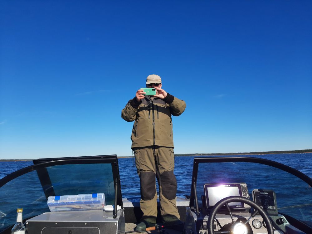 На воде тишина крастота. Вышли на глубину и по газам в даль дальнюю. На точке хот рябь есть какая то, а то штиль да штиль. Щучка молчала. Зато проявился окунь. и довольно бойко клевал. Да и размерчик приятный. Но как то быстро стайка ушла, а куда не известно. Чайки то нету, не отследить