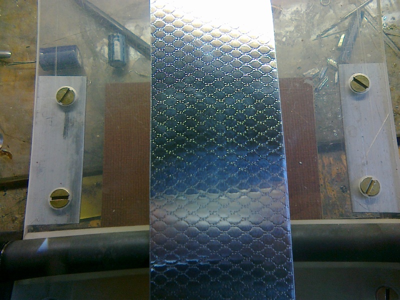 А я взял сетку для стирки нежных вещей,приклеил ее на кусок ДВП раствором эпоксидной смолы.Эпоксидки брал много,так что она пропитала нитки и по свойствам(несминаемости) она похожа на металлическую.Прокатывал фотоваликом,удлинив ручку трубкой- иначе трудно приложить большое усилие.