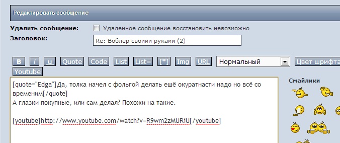 сергей писал(а):При написании сообщения в верхнем правом углу есть кнопка YOUTUBE. Кликаешь и вставляешь.Свой ролик сначала в Ютуб,далее сюда
