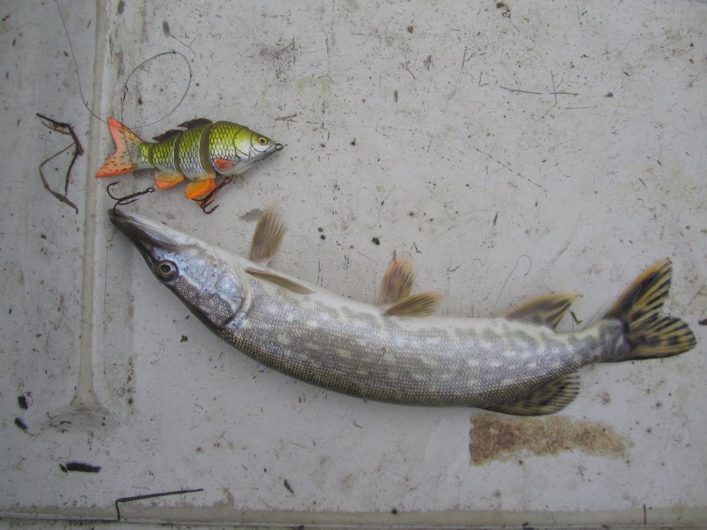В день приезда пол дня заняли организационные вопросы: покупка продуктов, зашел гостем к хозяевам, лодка, мотор, собирание снастей и т.д. так что к рыбалке приступил только к часу дня. В перый день поймано 3 щуки 1.2-1.5 кг, семь сходов и несколько выходов возле самой лодки. Особо хотел бы остановиться на этом моменте. В этой поездке как никогда было большое количество атак под самой лодкой, причем рыба ни разу не ударила по приманке, не сошла под лодкой, просто какая-то атака вслед у самой поверхности. Во время штиля, в солнечную погоду несколько раз видел, как щука просто сопровождала приманку на расстоянии около 20 см сзади. Эти сопровождения наблюдал на всей дистанции видимости - около 5м. Под лодкой просто уходила в тростник. Особенно часто это отмечалось за свимбейтами.