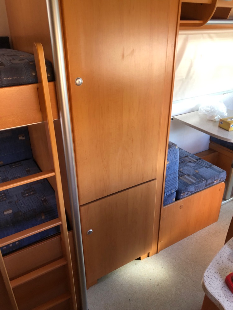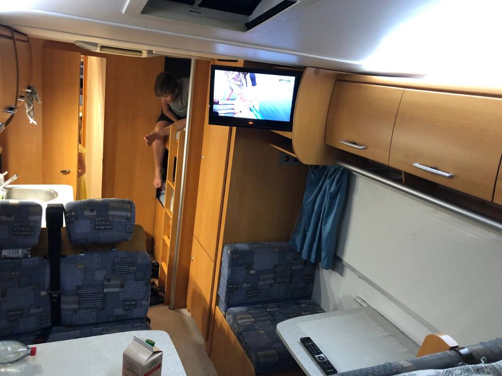 Второе - это внутреннее пространство. Я искал караванчик длиной 7 метров (с дышлом 8м). Это максимальная длина на одной оси. Так вот даже при таком размере внутренее пространство не позволяло иметь 4 готовых спальных места (двухспальную кровать и 2 детских койки) Детям приходилось бы каждый раз раскладывать спальные места или стелить диваны, тем самым лишаясь единственной зоны где можно посидеть. Проблема в том, что французская кровать занимает слишком много места и дополнительные спальные места уже разборные. Днём это будет обеденная зона, а ночю можно разложить койку. Так себе вариант....