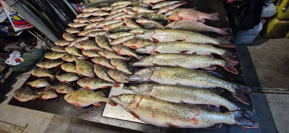 Окуня 25 кг, самые большие 900 грам, всё на двоих.