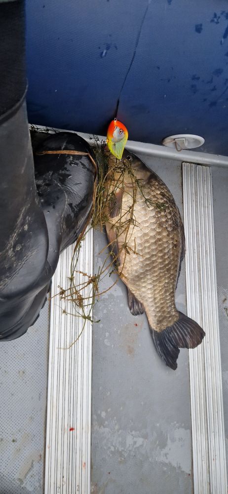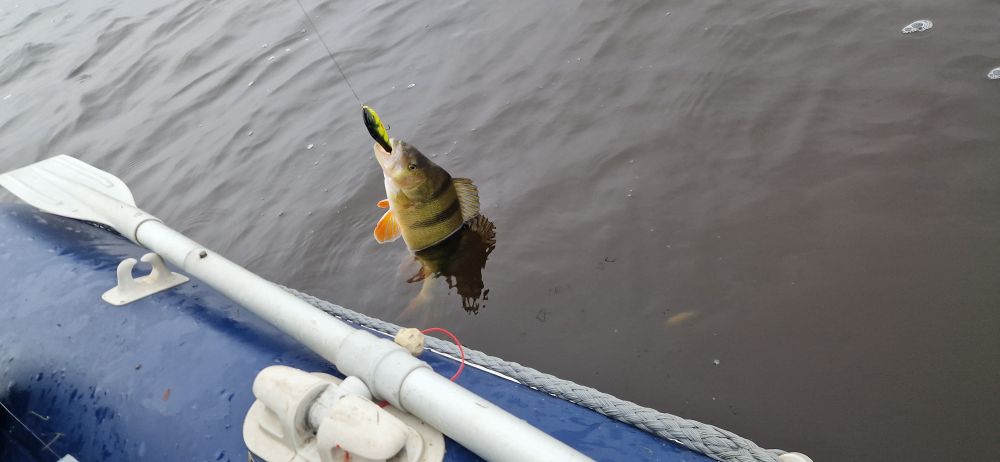 Но за 2 часа выхода рыбы успел 3 слить у лодки, 4 мерных отпустить и трёшку всю в пятнах отпустил, стремная...