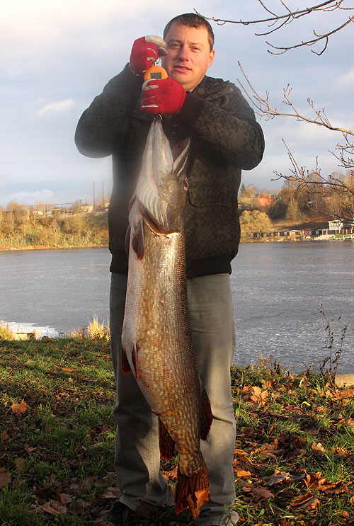 Добрый вечер, счастливчик с рыбой это я, и на фото я, а на постимеесе та щука, которая на кафельном полу неизвестно откуда ими взята, и действительно носит иллюстративный характер! Вышел утром около 10-ти, дорожил по руслу на кулгу, выше не пошел, в течении часа взял на 2.800 и эту на 14.400, ходил на сср. Вываживание на самом деле было не таким уж долгим, правда возле лодки не мог некоторое время поднять наверх, потом вышла, когда увидел, стало немного не по себе, но удачно с первого раза взял сачком с хвоста, а потом уж двумя руками за обод сака перевалил за борт...Ловил уже на 10кг года 3 назад, тут и фотки есть, поэтому еще в лодке визуально понял, что эта больше.... Вообщем выпутал из сачка, перекурил и по газам в гараж, в гараже был уже в начале 12-го....Фоткать было нечем, привез в город, приятель работает журналистом в газете, вот и созвонились, отъехали от города чуток, и возле РО-РО на берегу немного пофоткались...Позже будет больше фоток, когда он мне на мыло скинет все, а сейчас пока только те, что в заметке.