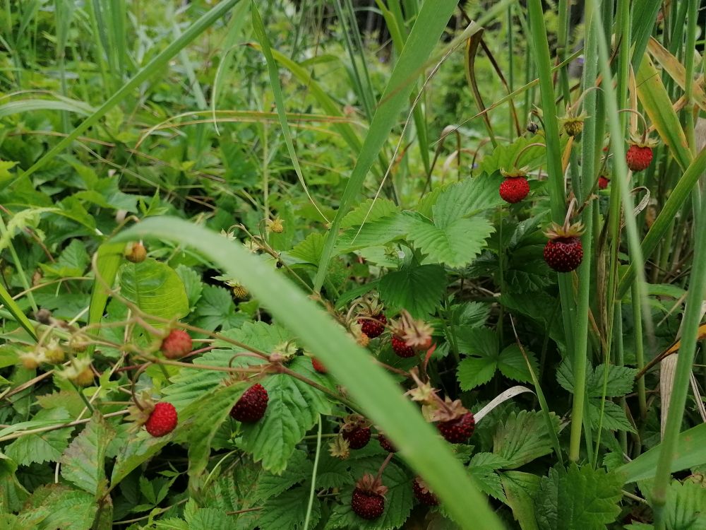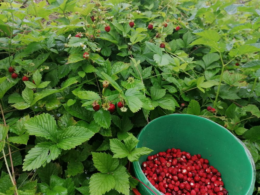 Сегодня поломали голову чем заняться, а потом взяли ведёрко и в лес. Чё найдём то найдём, а не найдём и ладно.Повстречали землянику, а давай попробуем пособираем, затягивает, с детских лет так ягоды не собирал. Еслиб дождь не выгнал, ещё бы собирали, уходить не хотелось.