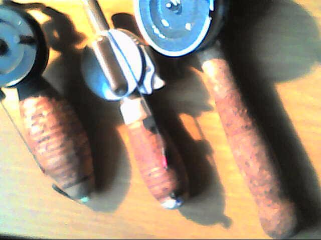 Первые две-береста,третья-винная(шампанское)пробка,смазаная воском(впитывается,не ощущается).Не вмерзает,не "морозит" руку.Если подсуетиться с осени и в Новый год-сырья на небольшие партии хватит!