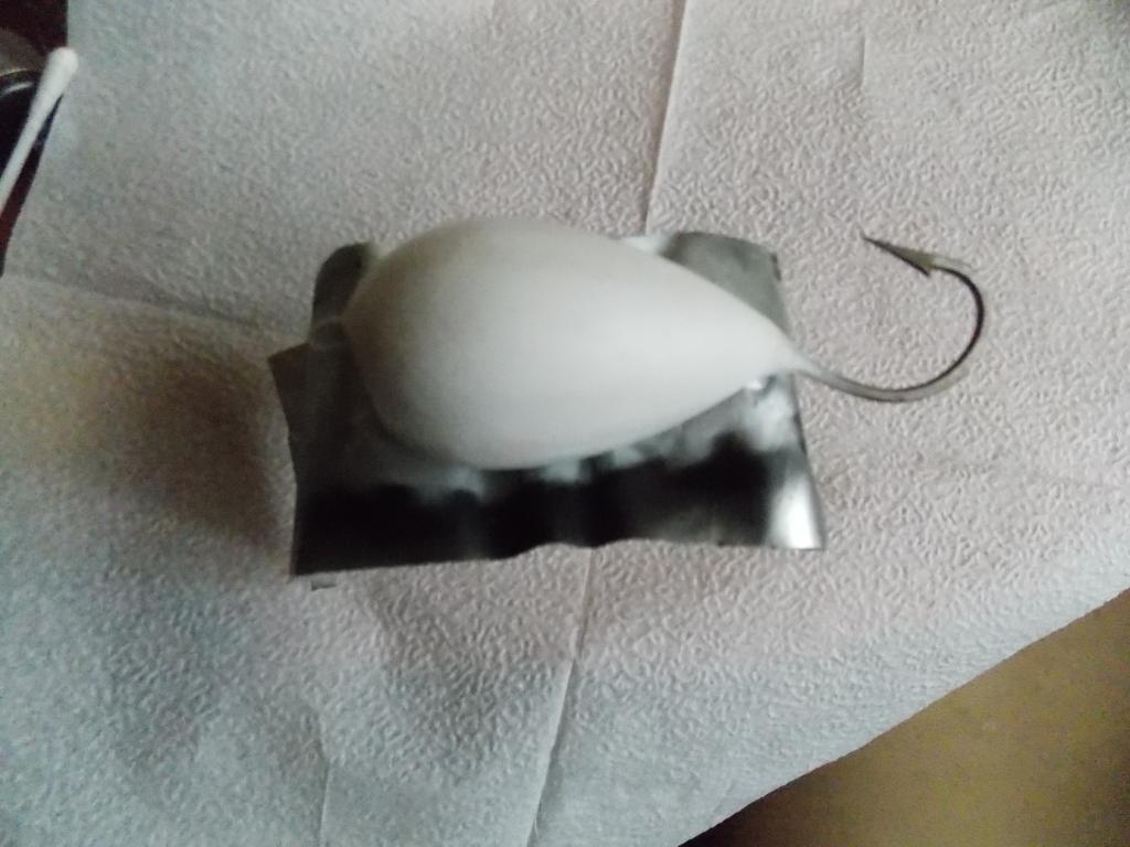 Первая попытка, кстати, была неудачной, зато веселой - в качестве макета для обтягивания выбрал не свою деревяшку, а оригинал пластиковый. Поначалу было все хорошо, но когда пластик воблера нагрелся, воздухом нагретым его вспучило )))