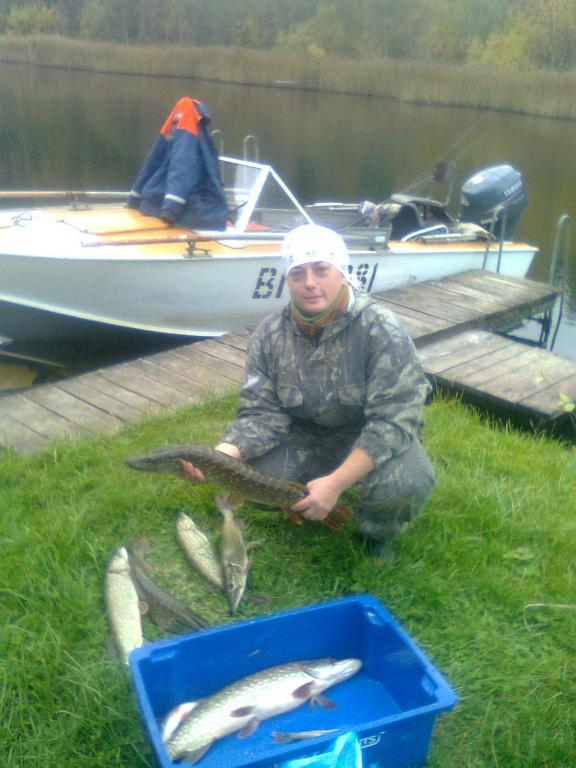 Большая часть конкурентов убралась, видимо ближе к дому, начал накрапывать дождик. Тут вижу, неподалёку в лодке подсачивают щучку на 2-3 кило