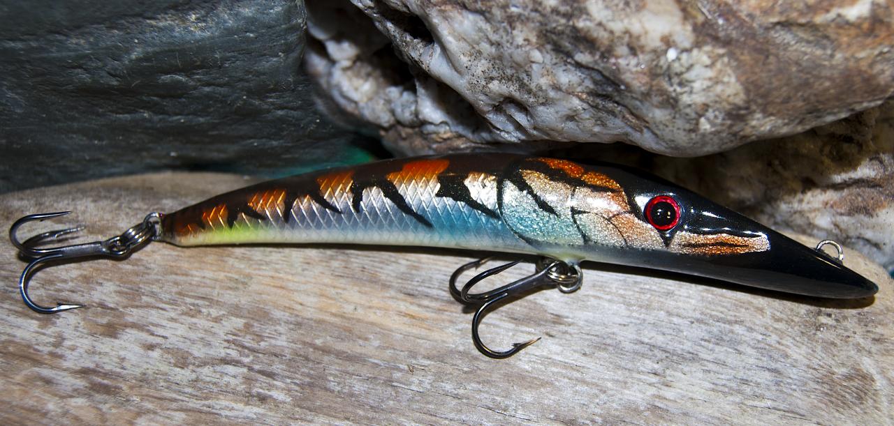 проверено неоднократно. адгезия к поликарбонату эпоксидов очень плохая. для примера воблер после реставрации. (за него отдельный поклон jurasemia - отличная идея, моя фантазия на "озерных духов" ). лопасть клеилась на энвиротекс, засверлено в черенке два маленьких отверстия для хорошей адгезии. лопасть выломалась от обычных тычков об дно (ловля взаброс). лучший вариант, на мой взгляд - очень плотная посадка лопасти в паз. об этом еще С.А.Г. говорил. и еще высокая текучесть энвиротекса при уже вклеенной лопасти служит отрицателную службу: большой наплыв лака вокруг лопасти, возникает, даже если лак на лопасть не попадал. если сперва лакировать, а потом клеить, то остается борозда, которую закрываю заточенной спичкой тонкой полоской лака после вклейки лопасти. здесь звучала идея, что нужно класть сразу толстый слой энвиротекса, дескать все равно растечется. я не согласен, так иногда остаются мелкие пузырьки и (не часто, но бывает) бывают скопления лака в одном месте в виде жирной капли. лучше два-три (при необходимости) средних или малых слоя.Ikel писал(а):Если лопасть из поликарбоната, то покрывать не советую. Адгезия к полику почти нулевая. Как я только над ними не изгалялся, но нормально так и не приклеил. Если лопата из пропионата, то не пробовал. Скорее всего тоже не приклеиться, но надо попробовать для достоверности.
