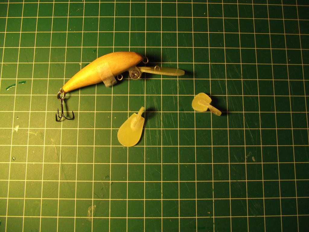 Требования к нему - береговой по возможности дальний заброс, собственная игра, разные варианты по заглублению. Но подумав, решил сделать себе сначала прототип для испытаний и отработки вариантов лопастей. Малая лопасть примерно 1/5 длинны воблера, средняя лопасть примерно в 1/3, а длинная сопасть - 1/2 длинны воблера. В общем всё понятно из фоток. Вчера весь вечер сидел в ванной - игрался