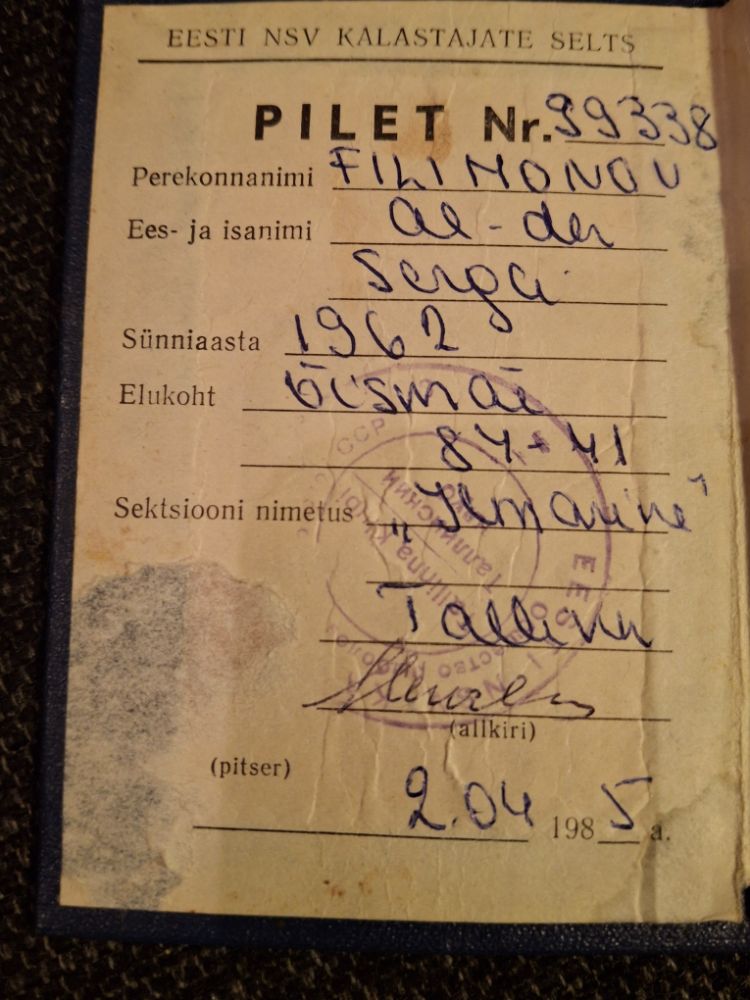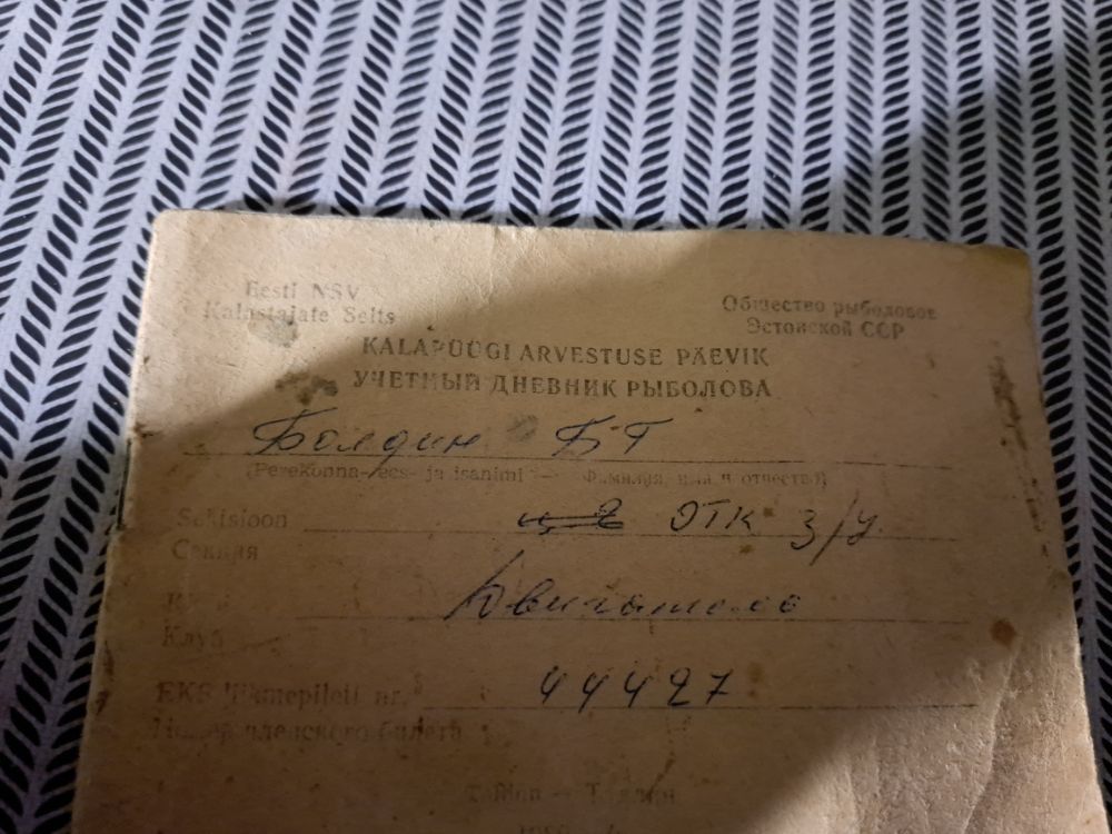 Копался в бумагах ,нашел первое свое удостоверение рыбака в Эстонии , у кого то есть такое.