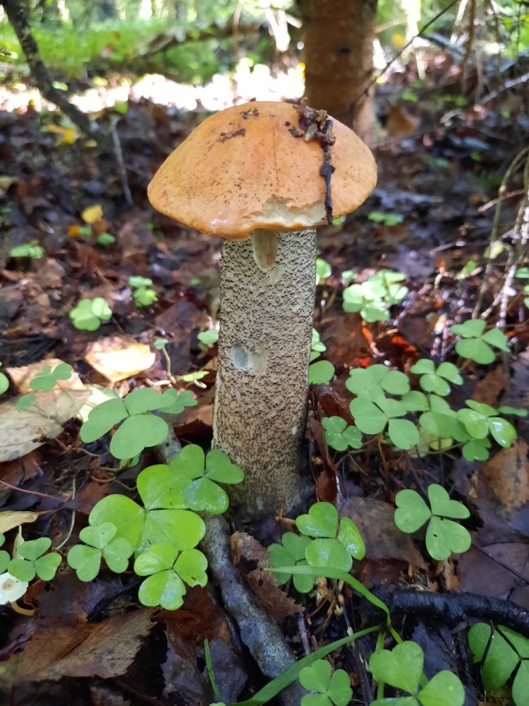 Говорит хочу по грибы, ну и рванули сегодня в сторону Ныва в 6 утра, пробегали 5 км, как сайгаки и набрали на жарёху штук 10 подосиновиков и пару моховиков...