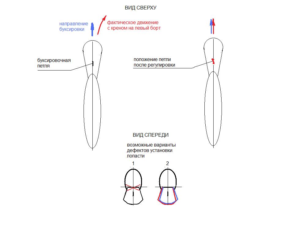То одно померещится, то другое. Я вот изобразил на картинке два варианта возможных (с моей точки зрения) дефектов, то есть: 1 криво установленная лопасть (кстати в какую сторону она у меня криво установлена?); 2 несимметричная лопасть (опять же с какой стороны она у меня нессиметрична?). Вобщем, настроил-то нормально играет, но не даёт мне это дело покоя