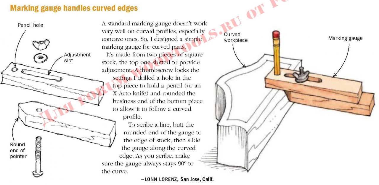 Еще одна подсмотренная идея в буржуинском столярном журнале - рейсмус для криволинейных заготовок: