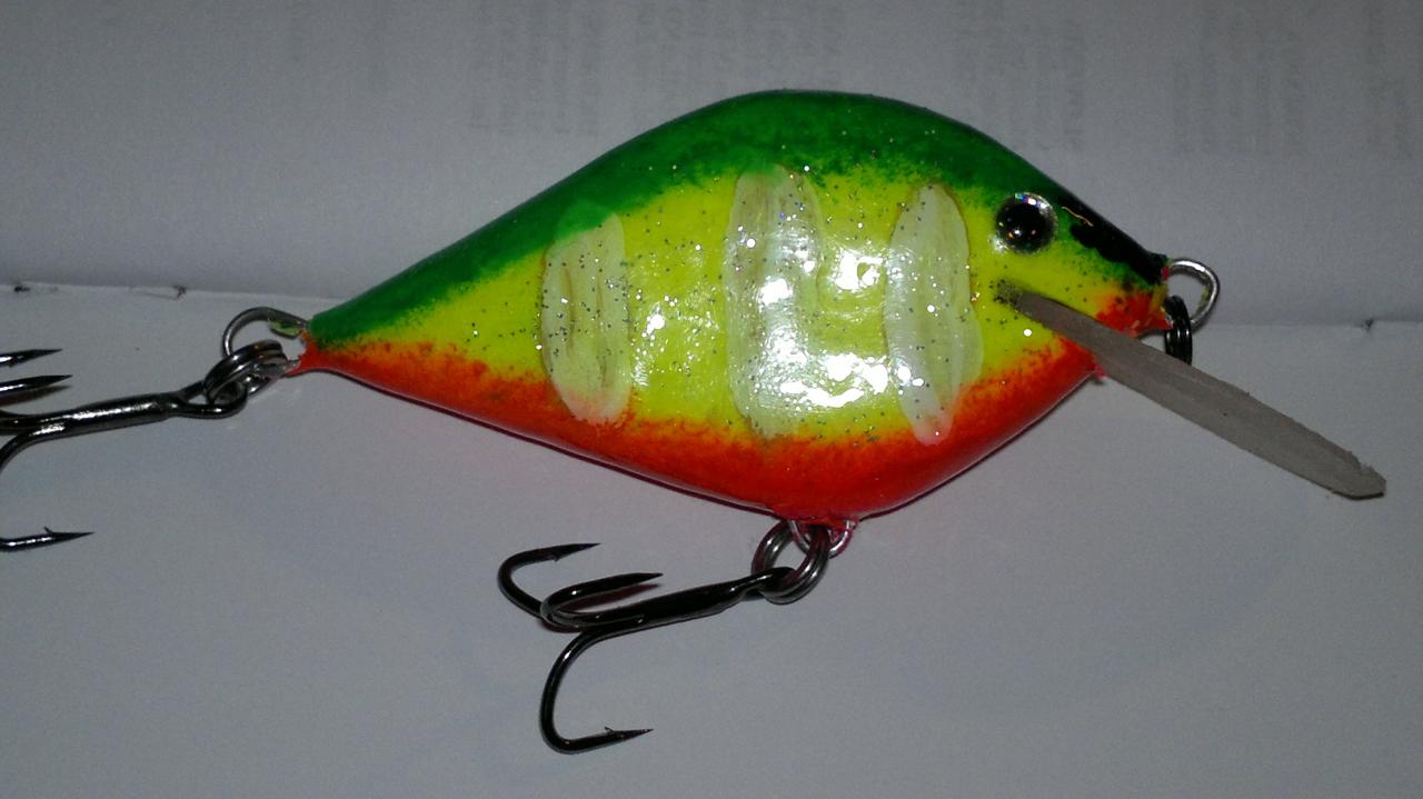 Малобюджетный - потому что себястоимость воблера получилась всего 25 руб.Можно сделать из любого материала.Точится очень просто и лекго.Игра вообще в идеале с таким расположением лопасти,стабильная и валкая.(видео пока не удаётся выложить-не загружается,потом всё равно выложу.)Вес 12,8 гр. Плавающий.Огрузка для устойчивости-между передней и средней петлёй для троллинга.Если делать для закидывания,то огрузить побольше свинцом-полетит далеко.Щука в Лигово и около Птиново будет ловиться на ура.Jeleziaka писал(а):Владислав, а почему малобюджетный (догадываюсь что по способу окраски) и почему на щуку? На крэнки щуку ловить не самый лучший вариант - работает эпизодически, "выстрелами", да и провести как нужно их можно в большинстве случаев только с лодки. Кстати, если нижний прогиб (по месту брюшного тройника) будет ближе к лопасти, чем "горб" - игра будет интереснее