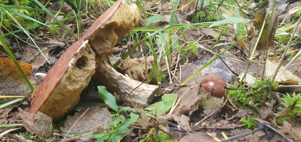 . Очень много переросших красноголовых, с десяток белых тоже, множество подберезовиков. Штуки три нашел хороших белых, и пяток красноголовых, из них лишь один молоденький. Прошлые сезоны это место только начинало выстреливать в это время.