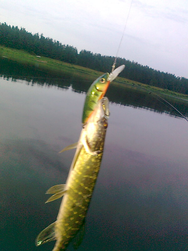 Олегыч наверно ты прав. Но главное я считаю то, что эти воблеры делаются из легких материалов(бальза и ППУ), а любое внедрение в тело воблера меняет развесовку и соответственно игру. А щука поймана на другой воблер, с Z-лопастью. Мне нравится что мои воблеры радуют рыбаков, а лопасти - ну что делать, бывает и такое.Дык, что тут смотреть. Очевидно, что счук схватил воба с головы и исплользовал лопасть как рычаг для взлома. Надо-бы продумать и изначально внедрять какую-то облегчённую шину жёсткости в пропил данного места.На самом деле у воблеров с "седлом" это очень слабое место, особенно при применении древесины с малым удельным весом и плотностью.
