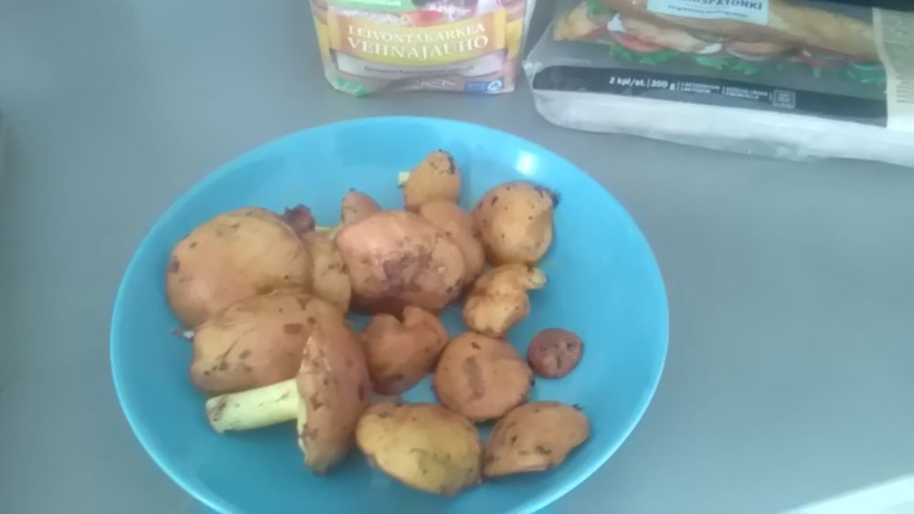 Не стал терять время проверил грибочки и тоже облом, за час на двоих ели ели на жарёху. Помчался на Вильяндское шоссе проверить подосиновики на болоте, 5 переростков и три напрочь сожранных молодых...