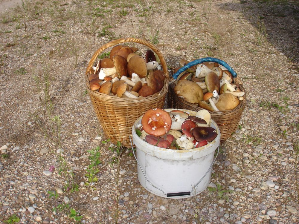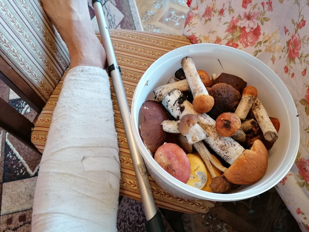 Тоже не усидел сегодня дома. Хуже нет ждать и догонять. Думал на следующей неделе сезон грибной открывать, как гипс сниму. Но пятая неделя пошла, невмоготу. Можно это бы время было рыбалке посвятить, но надо же было умудриться так звездонуться, что на левой ноге колено сломать, а на правом плече ключитсу вывихнуть. Поэтому целый месяц, что и мог, так это с подругой прогуляться, чуть за деревню и обратно. А сегодня в лесу отрывались, она набесилась, пришла и рухнула дома, да и я сильно от неё не отставал. Позабыв про всё, что болит и мешает, скакал через валежники и буреломы. Во что азарт животворящий делает! Поехали в обед уже, боялся заедят гады всякие, на удивление, ни кто особо не докучал. Начал чуть лисичек, потом потихоньку всё вперемешку, сыроежки, подберёзовики, подосиновики, боровики. Но, грибов не много, и местами, много только переростков встретили, а молоденьких в окурат.