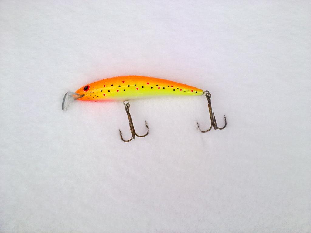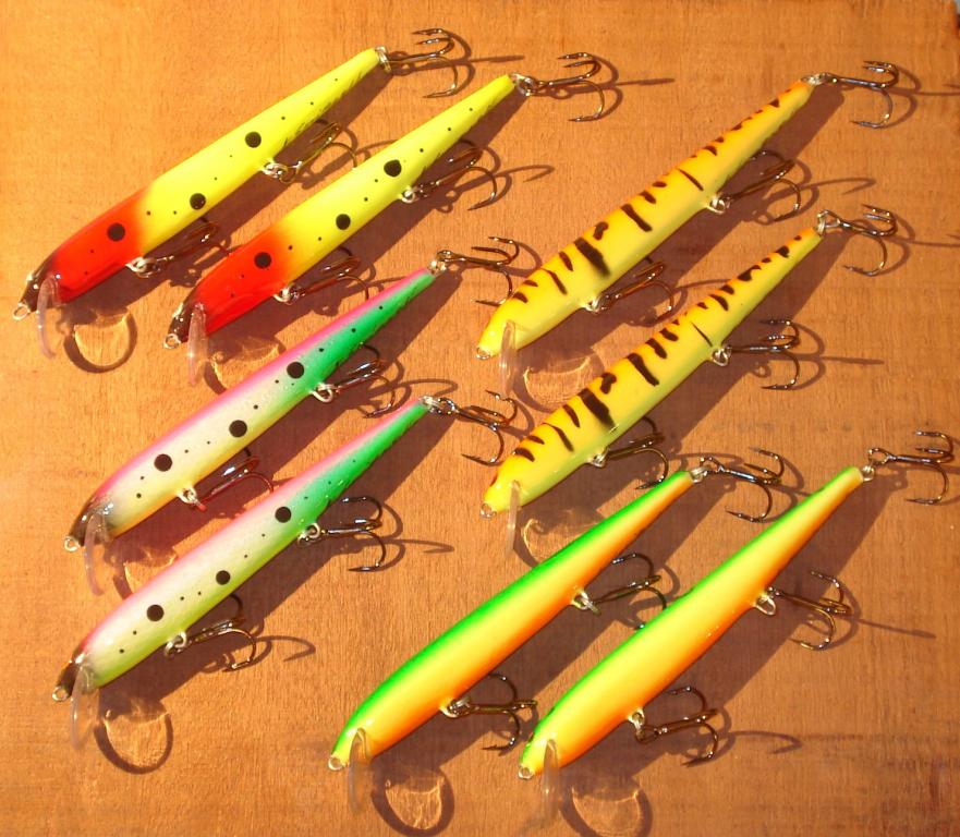 первое фото: воблер после реставрации. пробовал вырвать носовую петлю, оторвал вместе с носом. пришлось менять форму.