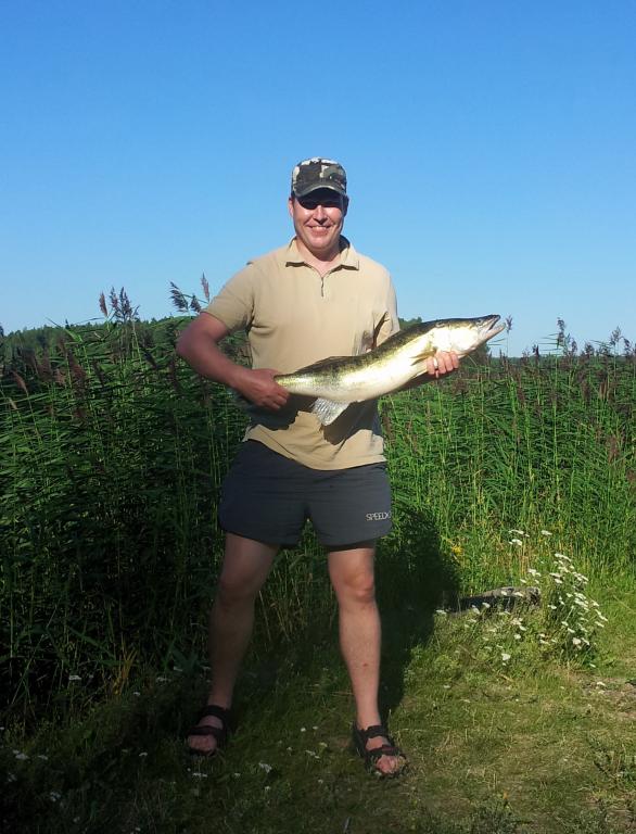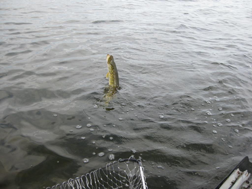 У напарников дела обстояли может чуть более результативно - им довелось попасть на выход щуки. Около часа она бесновалась в одном из заливов. Были и трофейные экземпляры и даже попытка сожрать килошку по дороге в лодку..... Удивила форма строения щуки: громадная мощная голова и тонкое длинное туловище. Такое впечатление, то щук там не кормят месяцами, хотя кормовая база офигенная. В общем рыбалка получилась трудовая, но тем самым и интересная. Пообщались, насмеялись от души, получили новый опыт. Поездка удалась на все.
