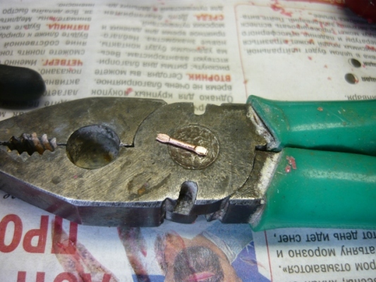 и обжимаем полоску металла вокруг проволоки плоскогубцами.