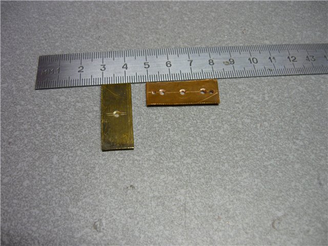 Второй способ чуть сложнее. Отрезаем полоску металла, например - 4 мм. Если под ось вертушки будет использоваться проволока 0.6 мм. , то берём проволоку или свёрлышко потолще ( 0.8 - 1.0 мм.)