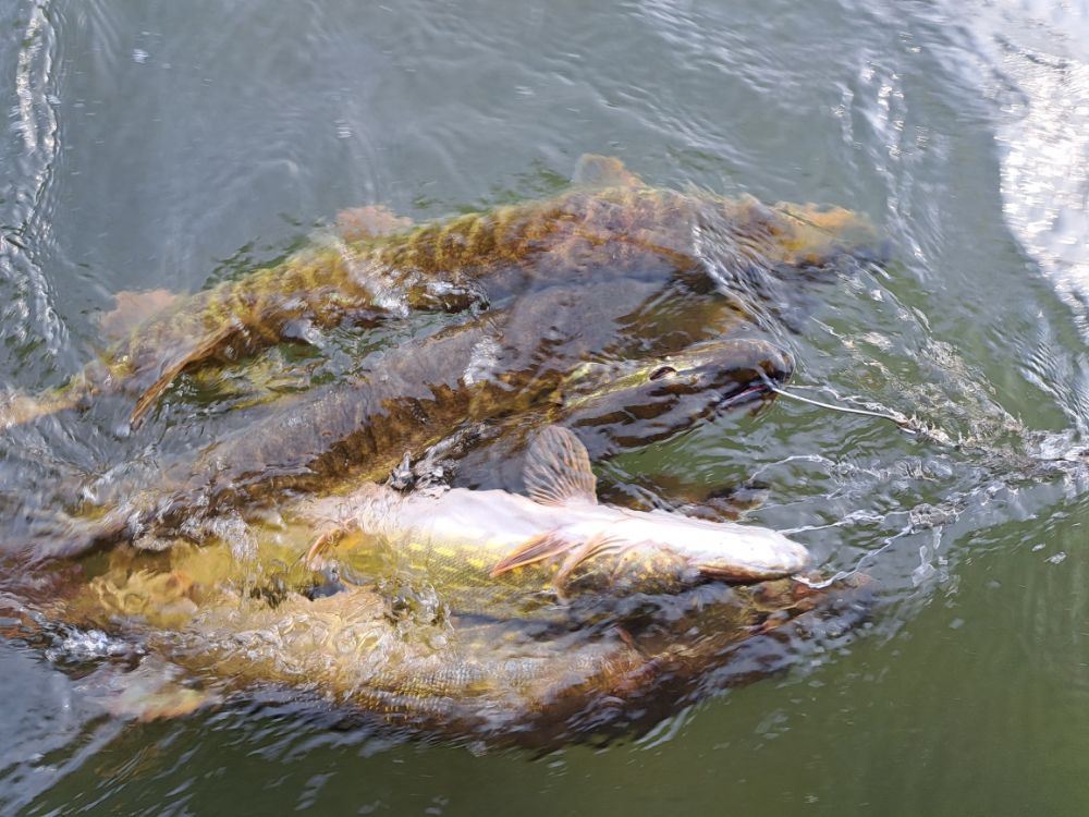 Поклёвок меньше. Зато нарушили традицию, теперь уже не две, а четыре штуки на кукане