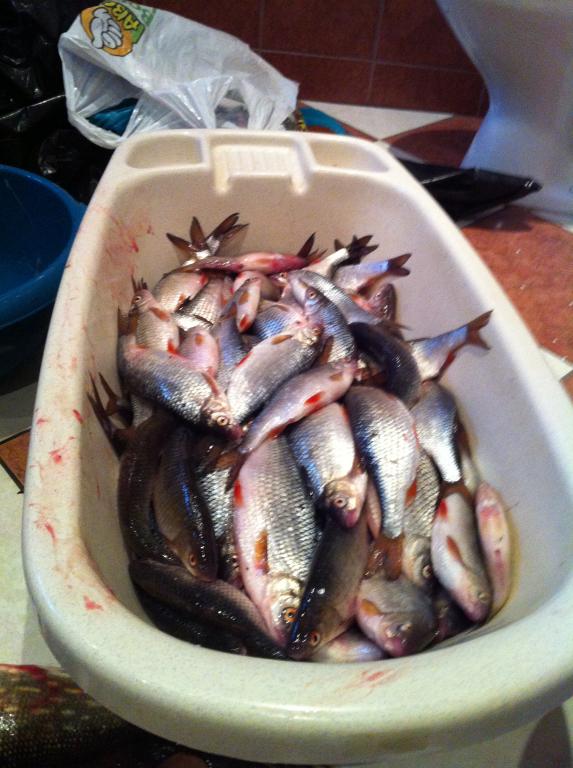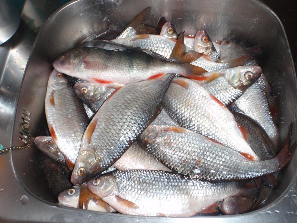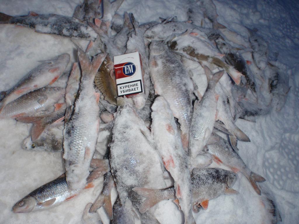 Вот выдалась минутка,написать отчёт,пока Серёга(друг) плющит рыбу. В среду рванули на моё излюбленное место,и так как в первые в этом сезоне,то начали с разведки. Первые в дело пошли блёсны и балансиры-глухо. Только одна густёрка. Следующим пошёл в дело опарыш,и дело пошло. Плотва ловилась отменная,даже живца толком не выбрать. С горем пополам к часу дня,жерлицы расставили. Продолжили плющить плотву,и эпизодически пробовали блёсны. Сергей двух судачков недомерков поимел,а я только пару ударов. На жерлицы только 3.размотки. В итоге 11.кг. хорошей плотвы и несколько окушков.
