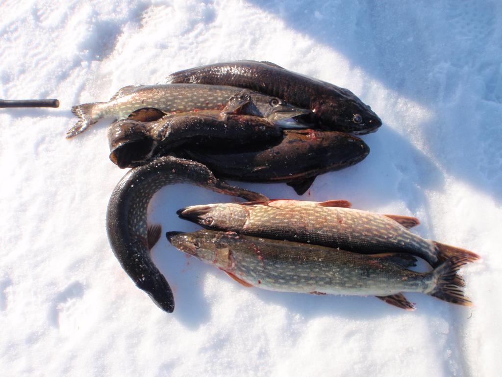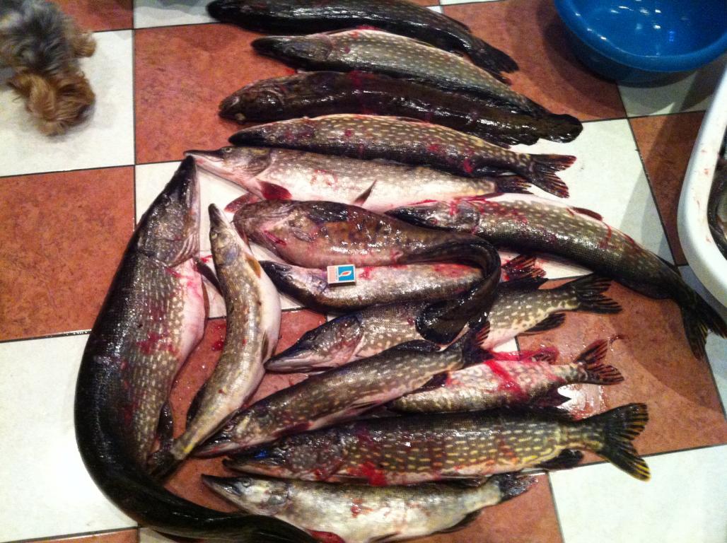 Выходные прошли на УРА! В пятницу друзья оповестили что выезжают с Питера,и я после обеда побежал поставить жерлицы. К ихнему приезду,2.5-3.часа прошло, поймались две щучки 1.5 и 2.кг.,и ещё успели пару кг. плотвы поймать. Вечерком как обычно-ужин с чайком и попи...болталки.