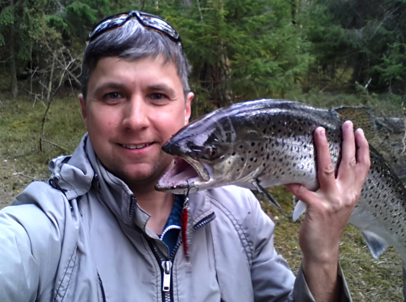 Сегодня было лучше, чем позавчера, когда мы взяли 8 рыб и все до единой отправились обратно. Товарищ ловил на одно из произведений Gladsax, я на свой TroutFighter Sprat. Вся рыба была, как на подбор до 45 см.