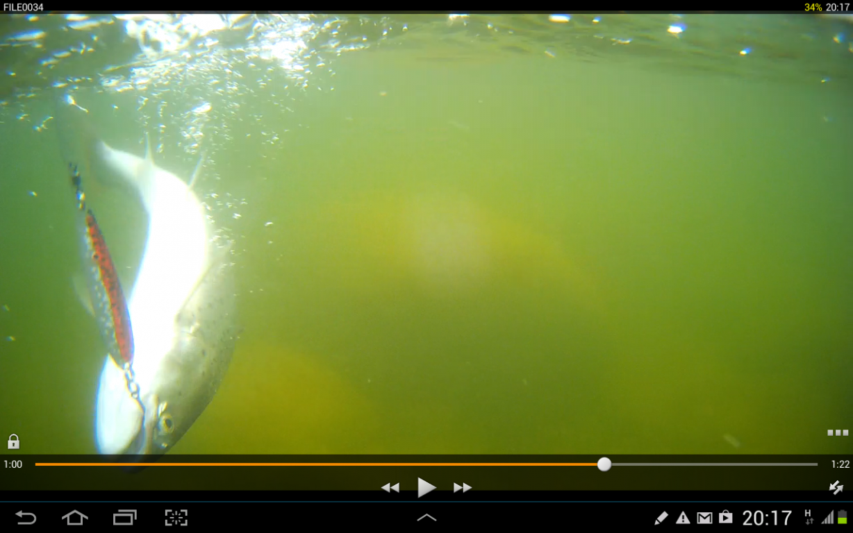 Не проверишь, не узнаешь и поэтому еду туда. По пути мне на хвост садится ещё одна машина, в последствии выяснилось, что тоже с рыбаками, которые тоже едут на туже самую точку !! Припарковавшись и перекинувшись парой слов с ними, приходим к согласию, что на точке мутняк и рыбу нужно искать с другой стороны мыса. Разбредаемся вдоль побережья и начинаем ловить. Пройдя метров 500 получается найти место с более-менее чистой водой, там и останавливаюсь. После получасового обстрела, происходит зацеп, который оживает и начинает делать свечки. Поскольку поклёвка была очень невнятной, то нормально подсечь не получилось и происходит сход. Смотрю соседи, которые ловили рядом, собирают вещи и уходят. Перемещаюсь на их место, десяток забросов и чуствую как будто удар. Следующий заброс, проводка, пауза, загиб и подсечка - есть ! Подвожу к себе, идёт довольно спокойно. Думал сходу завести в подсак, но не тут то было. Как только я его достал, рыба устроила настоящий бой с пробежками и свечками. В итоге раза с 20-го получилось таки её побороть.