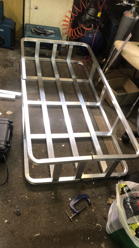 Я решил делать её из алюминия. Спасибо Саше эмерсу за организацию покупки нужных мне профилей. По приезду профиля уже ждали меня на складе и оставалось найти возможность их согнуть. Как я не старался, а найти где можно согнуть квадратный профиль я так и не смог. Пришлось делать самому приспособу и гнуть вручную. В этом помог Дима (Dmitri576), который подогнал необходимые железячки и впоследствии варил саму алюминиевую конструкцию, за что ему отдельное спасибо!!!