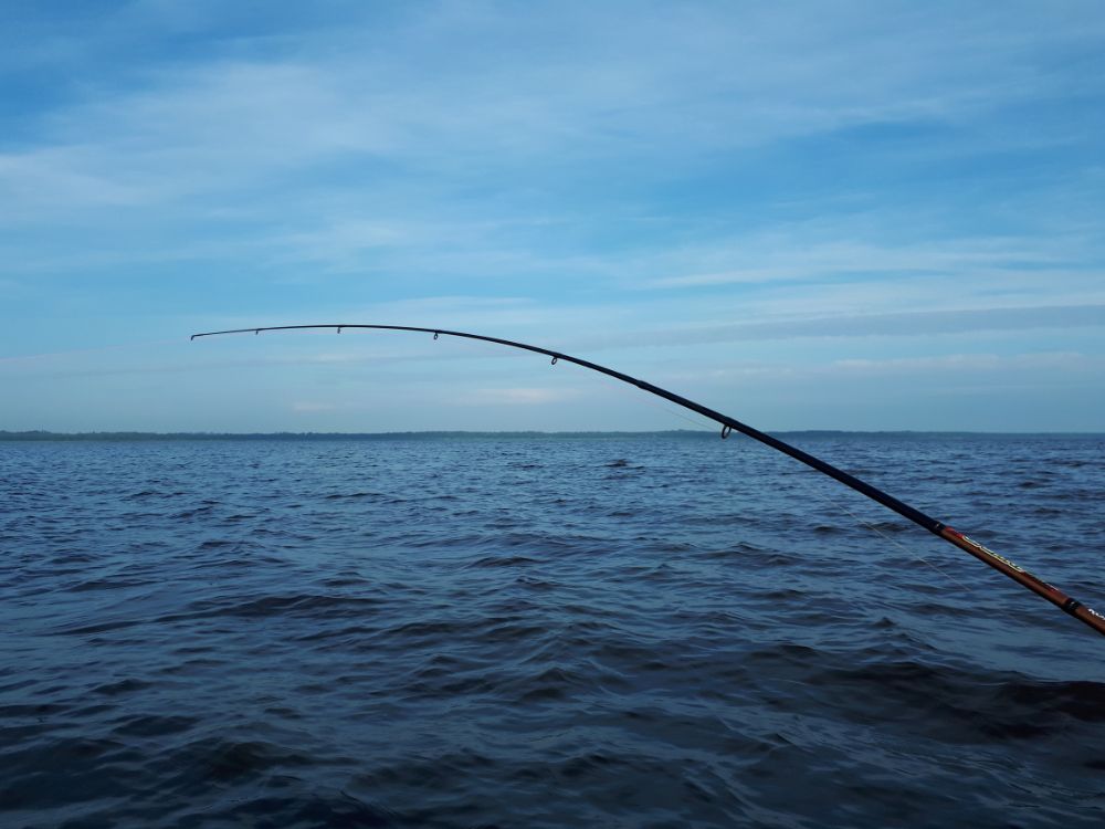 троллингу,по такой волне веселое занятие получилоь.Через какую сотню метрову напарника загиб и сход,потом почти сразу загиб на оба ствола.Одна на 1киллограм 900 грамм(специально для капитана подчеркиваю