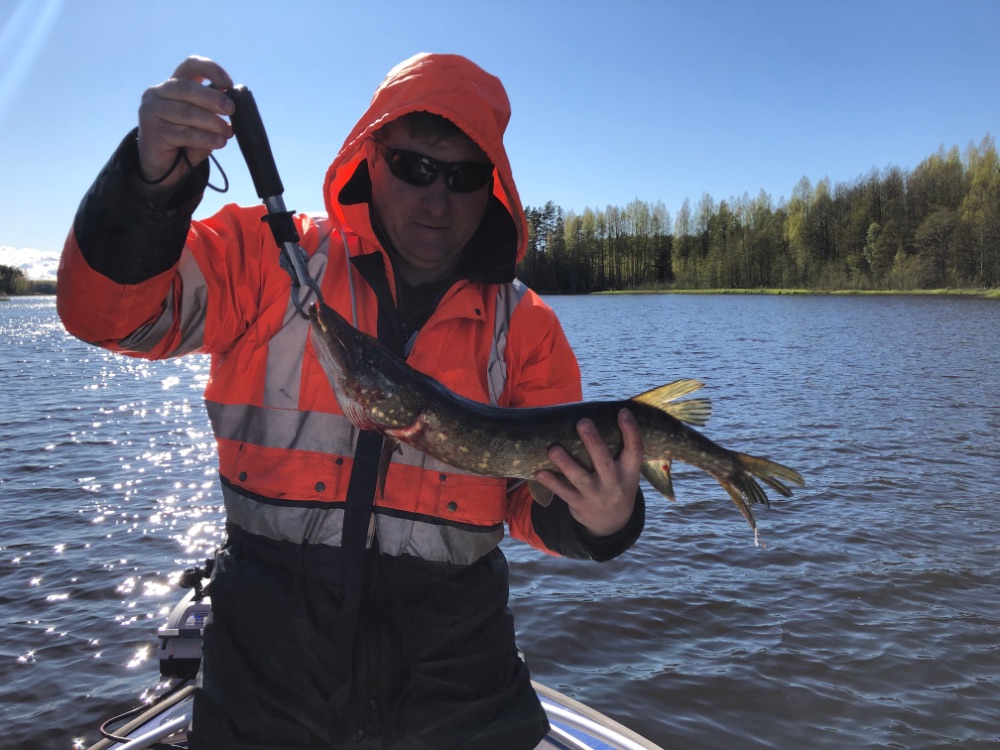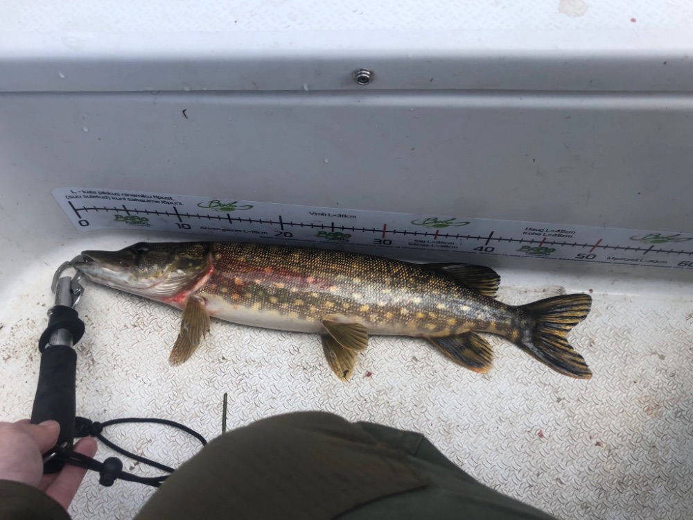 Время было немного, буквально пару часов. Товарищу удалось зацепить щучку 1,5кг.