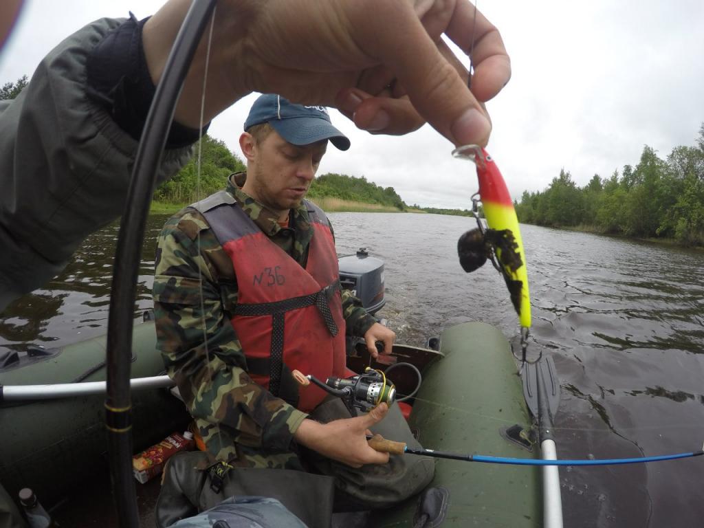 Первую проблему другу удалось решить довольно быстро - созвонившись с товарищами, нашли мне лодку "в аренду" на рыбацкой базе, куда мы собственно и собирались ехать. Со второй проблемой пришлось смириться. Получилось собрать по одному спиннингу и удочке на брата. Из приманок было всего пара вертушек, пара блёсен и один! воблер