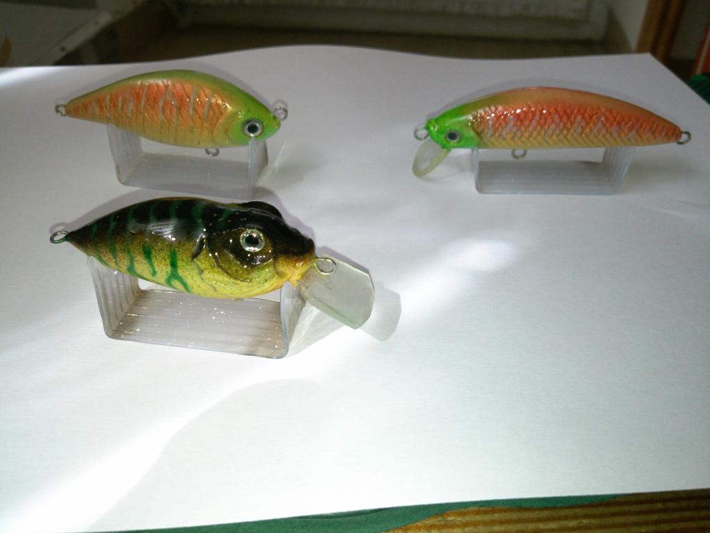 Сделал три воблера с пропионатом. Про муки с пропиткой уже писал. Окунание в прозрачный на удивление спокойно, ни побеления, ни растрескивания краски, только вокруг петли какая-то хрень. Покрыл уже 8 раз, толщина одного слоя 0.11 мм, может хватит уже, скорлупа около 0.9 мм.